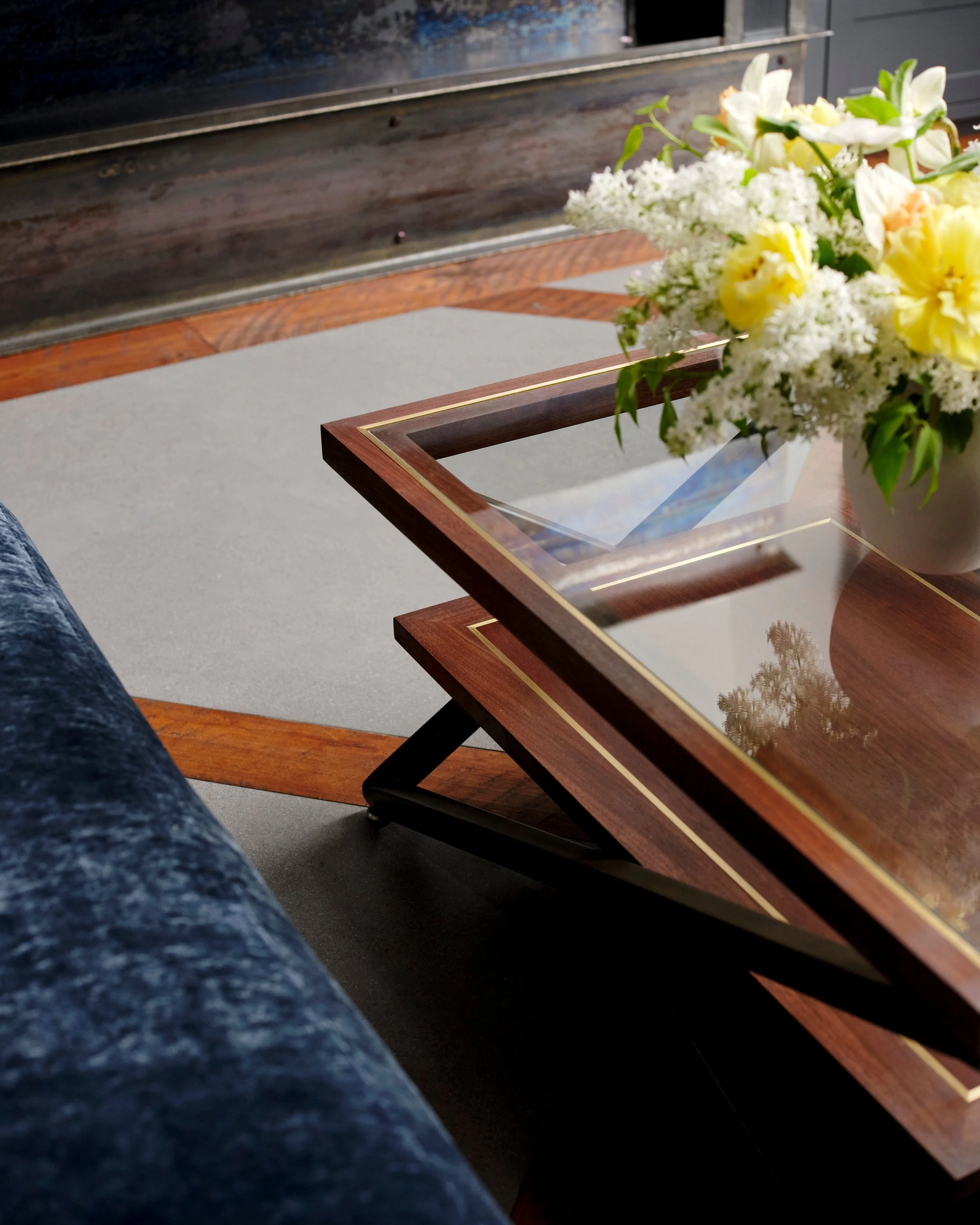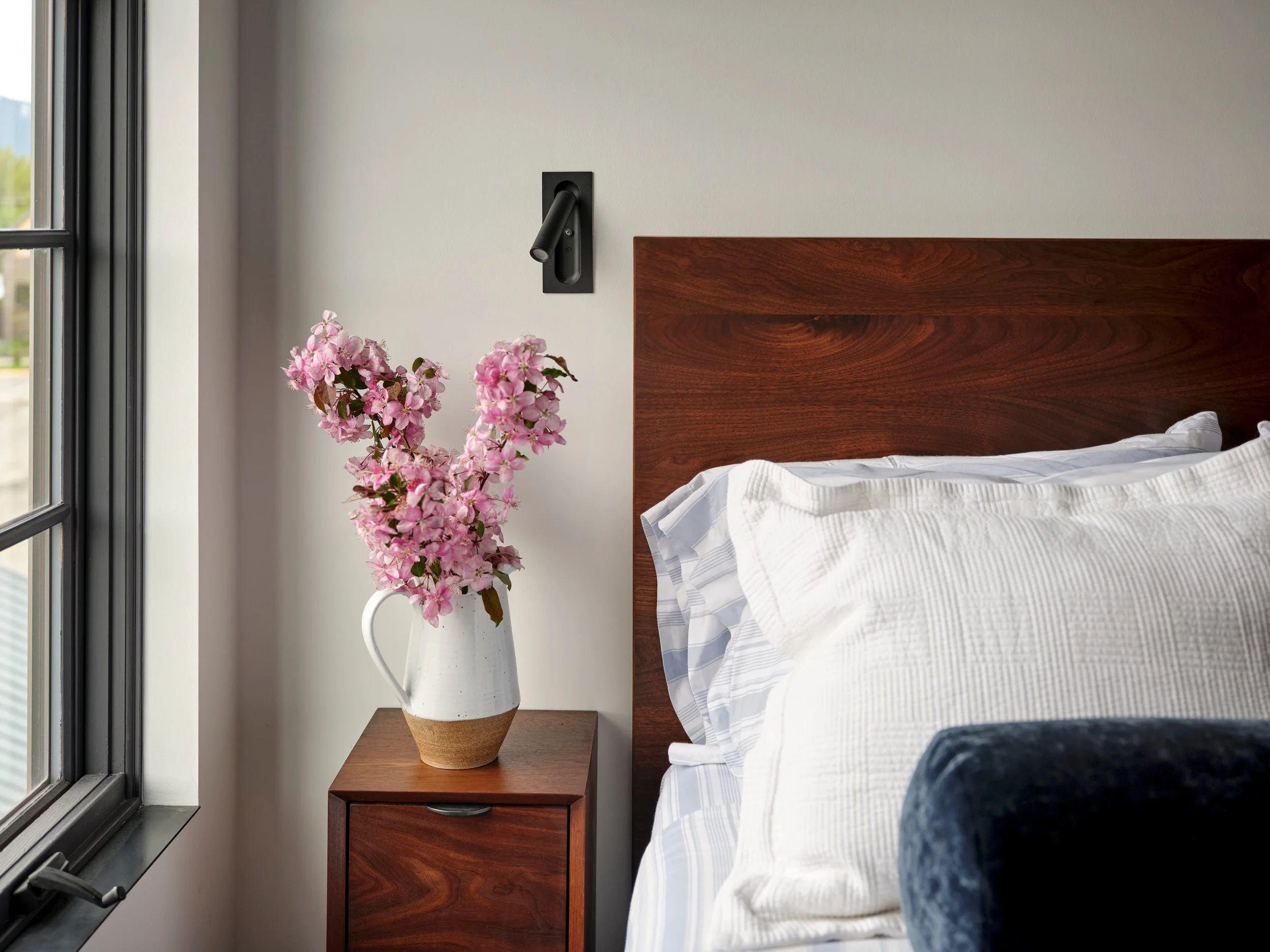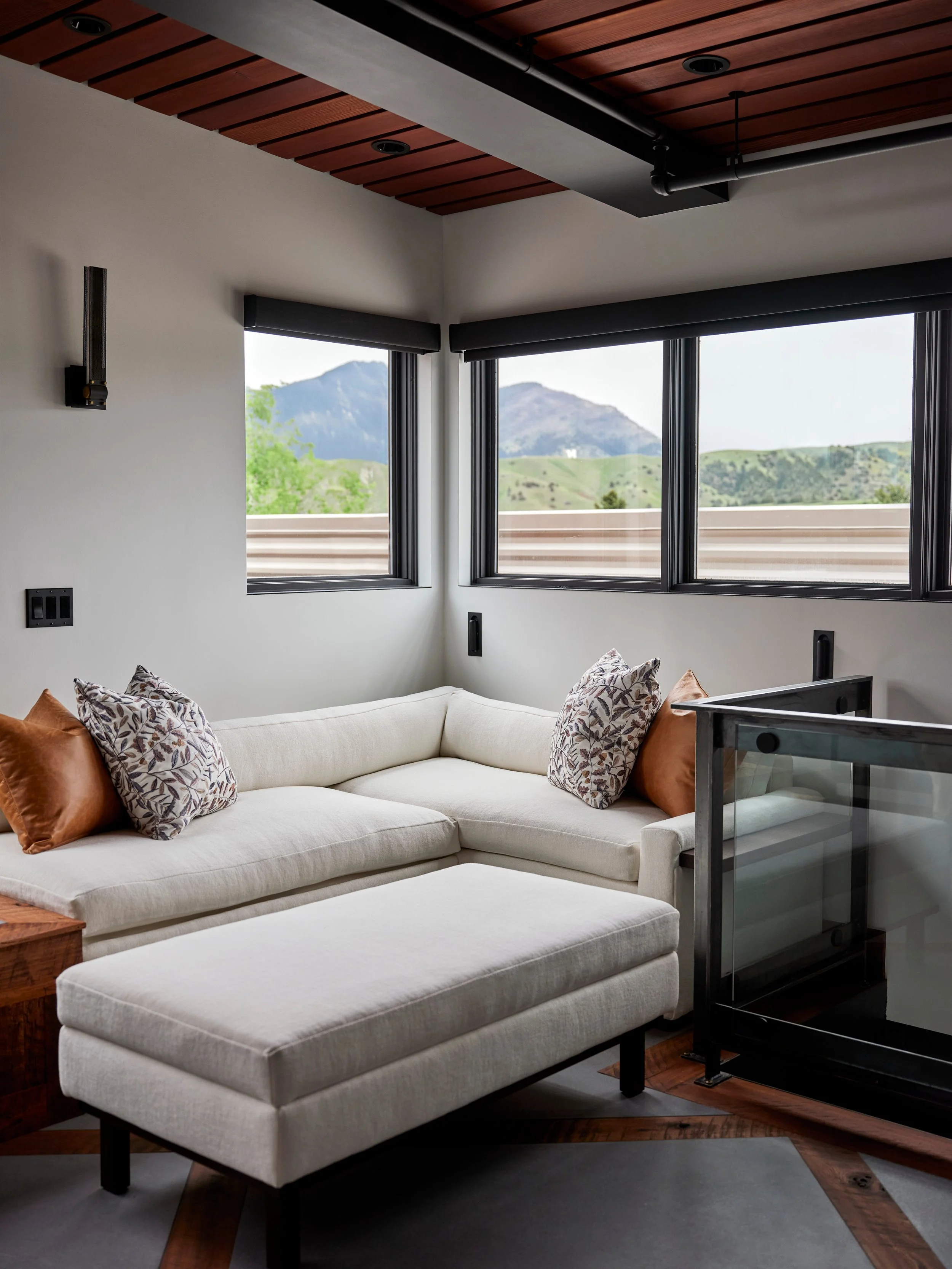 A thoughtfully designed home in northeast Bozeman with a modern design. Showcasing deep velvety upholstery and warm walnut wooden fixtures. GSD designed & built.